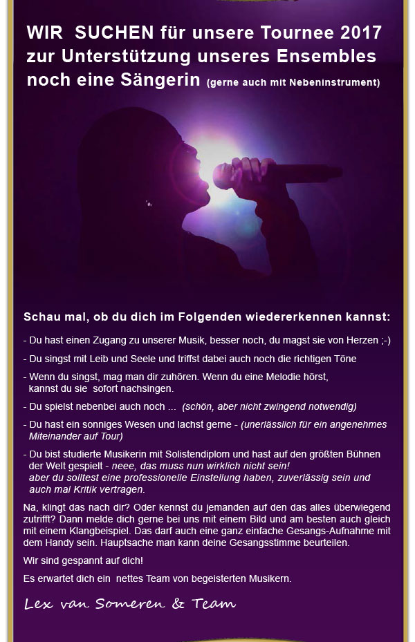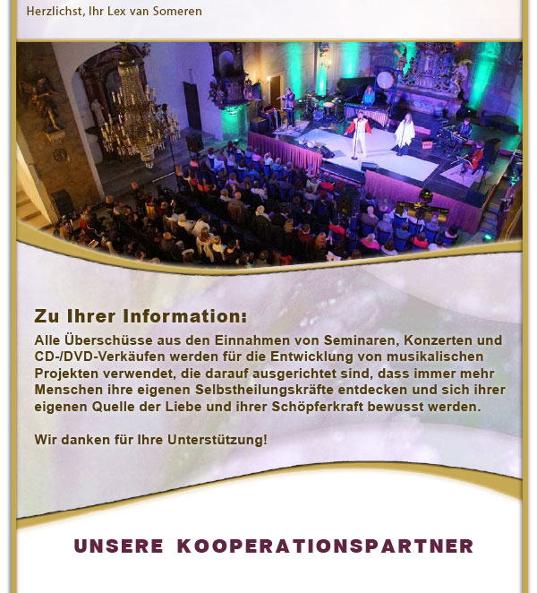 Verantwortlich im Sinne des Presserechts: AYAM Visionary Art Productions, Lex van Someren, Auf der Alm 19, D - 76534 Baden-Baden, Germany, Phone: +49 (0) 7223-80665-0, Fax: +49 (0) 7223-80665-29, e-mail: music@someren.de www.someren.de