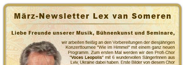 Verantwortlich im Sinne des Presserechts: AYAM Visionary Art Productions, Lex van Someren, Auf der Alm 19, D - 76534 Baden-Baden, Germany, Phone: +49 (0) 7223-80665-0, Fax: +49 (0) 7223-80665-29, e-mail: music@someren.de www.someren.de