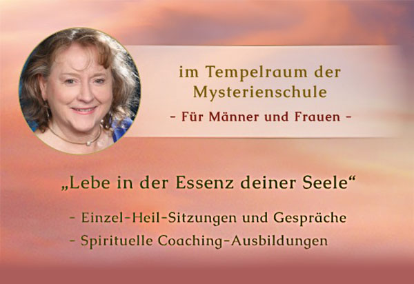 3-jährige Ausbildung zur Begleitung von Menschen, die in der Essenz ihrer Seele leben wollen, in Einzel-Heilsitzungen. Ausbildung mit umfangreichen Inhalten, Praxis-Präsenz-Seminare (im Tempelraum Dresden, untermalt mit der Musik von Lex van Someren), Körperarbeit, Selbststudium, etc. Beginn: Januar 2026 – alle Infos